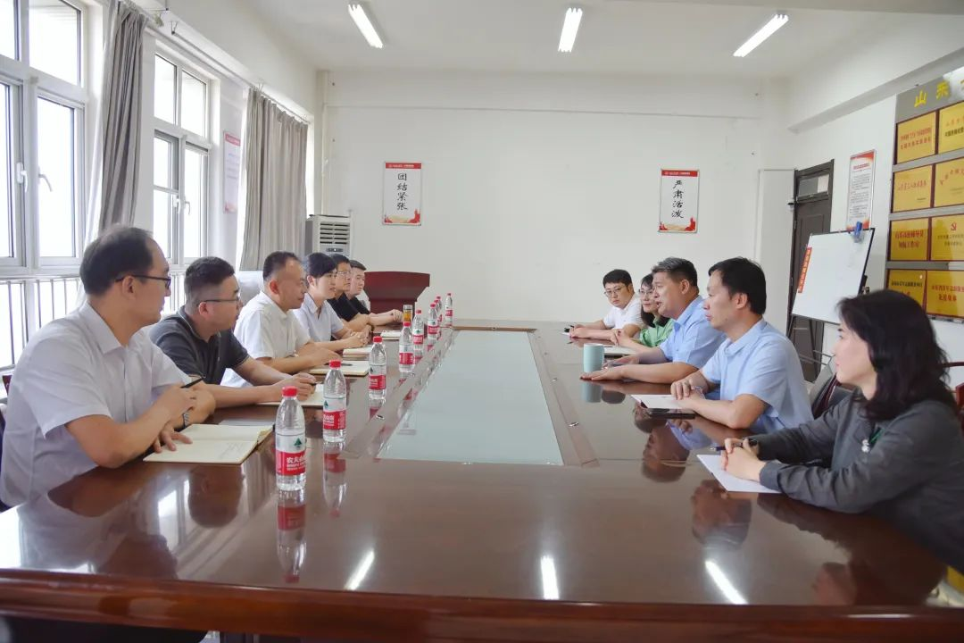 6月20日,长清区双泉镇党委书记刘伟带队到山东女子学院工商管理学院对接乡村振兴工作。工商管理学院院长张可成、党委书记王兴盈、副院长秦善勇,全国党建样板支部书记、“振兴力行”党建工作坊负责人李宏洁,双泉镇镇长滕桂林、党委副书记刘磊,高庄村党支部书记及双泉农发有限公司负责同志参加座谈。