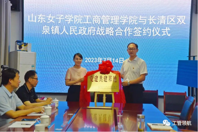 为进一步发挥党建引领高质量发展作用,深入推进校地合作和产教融合,更好助推乡村振兴,2023年7月14日,山东女子学院工商管理学院教工第一党支部和长清区双泉镇高庄村党支部举行党建共建基地揭牌仪式。山东女子学院工商管理学院党委书记王兴盈,党委副书记、院长张可成,教工第一党支部书记李宏洁、宣传委员黄世国,长清区双泉镇党委书记刘伟、镇长滕桂林、高庄村党支部书记贾波参加揭牌仪式,王兴盈书记和贾波书记共同为党建共建基地揭牌。