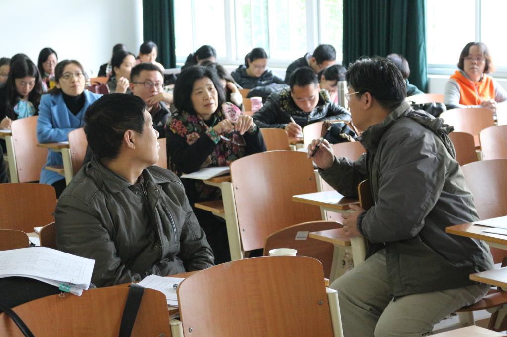 本次活动专家们按照第二次听课活动的汇总意见和安排,首先,请黄世国老师介绍多媒体课件制作方面的经验,宋传珍老师为学院全体教师做了45分钟的示范课;然后,根据专家上周提出的建议,随机抽出了几位老师进行30分钟的讲课;课后,专家再次提出改进建议。本周是学院安排的最后一次讲课活动,老师们十分珍惜此次听课活动,仔细聆听专家点评,进步在相互探讨中不断的改进教学课件,深化讲课内容。最后,院领导发言,感谢专家连续三周,利用周末时间指导老师的讲课,老师们纷纷表示通过讲、听、评课活动,收获非常大,讲课水平有了很大提高。