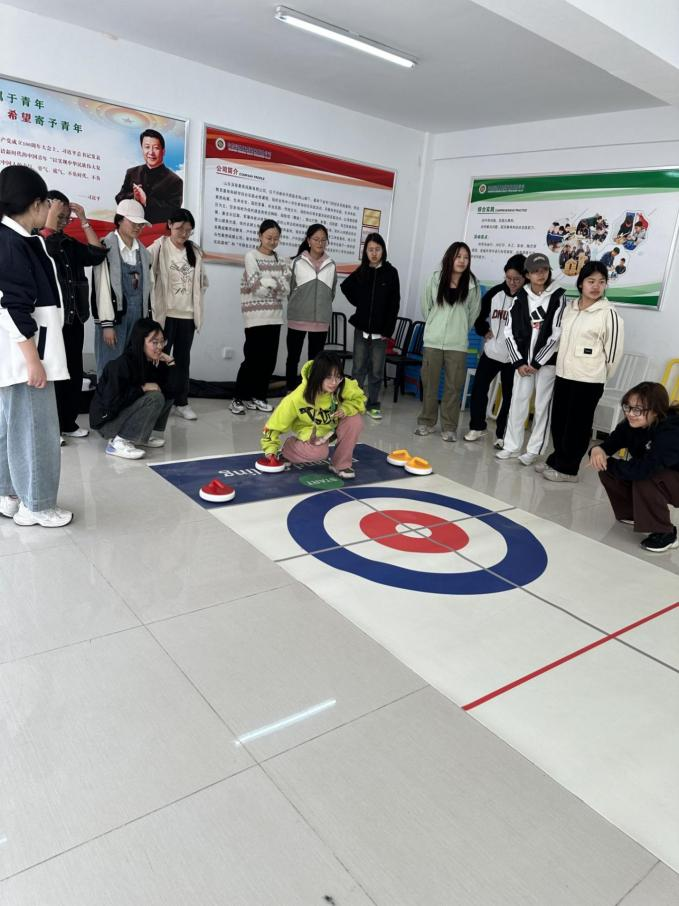 在“凝心聚力”旱地冰壶挑战赛中,一记漂亮的掷壶令人赏心悦目,一个巧妙的布局也让人为之赞叹,同学们更是反复推敲和瞄准,每一次投壶都精打细算,分毫不差,直达目标位置。