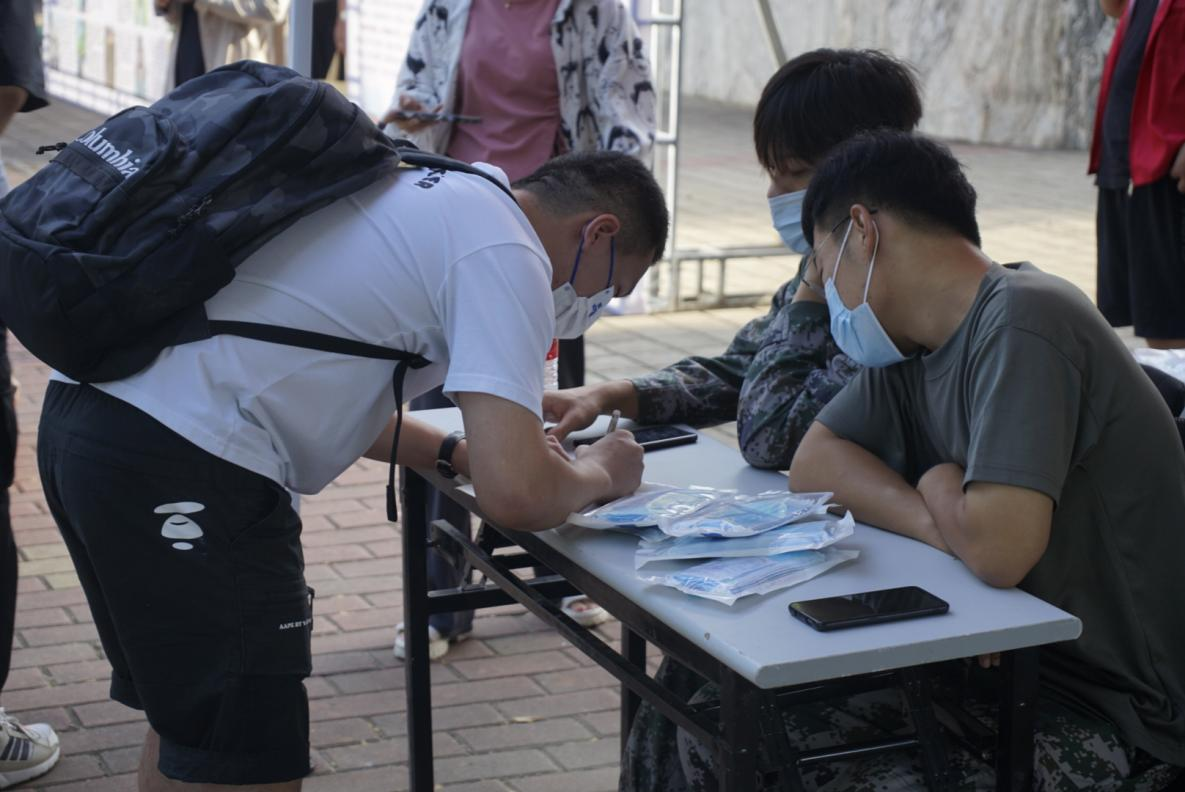 在核酸检测的现场,退伍大学生们帮助组织队伍、维护核酸检测秩序、轮流值班,积极为新生答疑。退伍大学生们身着军装,严格维护我院核酸秩序,确保我院核酸检测高效率高质量开展。
