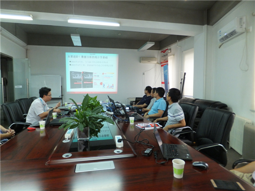 曹正凤博士首先以“大数据概述及大数据课程体系建设”为题做了主题报告,详细讲解了大数据的概念、方法、软件和他们在大数据课程体系建设方面做的工作和面临的困境;而后以“互联网金融风险大数据分析”和“电力企业K-means聚类及判别大数据分析”为例讲解了经管之家大数据研究院开发的windows界面大数据分析实验实训平台的操作流程;最后双方就大数据课程体系建设、大数据实验室建设方案等问题进行了深入交流和沟通。