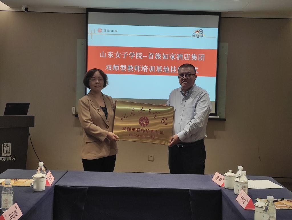 2021年9月24日上午,工商管理学院与首旅如家酒店集团,在济南高新区如家精选酒店举行“双师型教师教育基地”挂牌仪式,这是工商管理学院加强省级一流本科建设、全面提高应用型本科教师质量的重要举措之一。与行业标杆的大中型企业共建双师型教师培养培训基地,建立高等学校、行业企业联合培养双师型教师的机制将有利于高校教师教师定期到企业实践,不断提升实践教学能力。