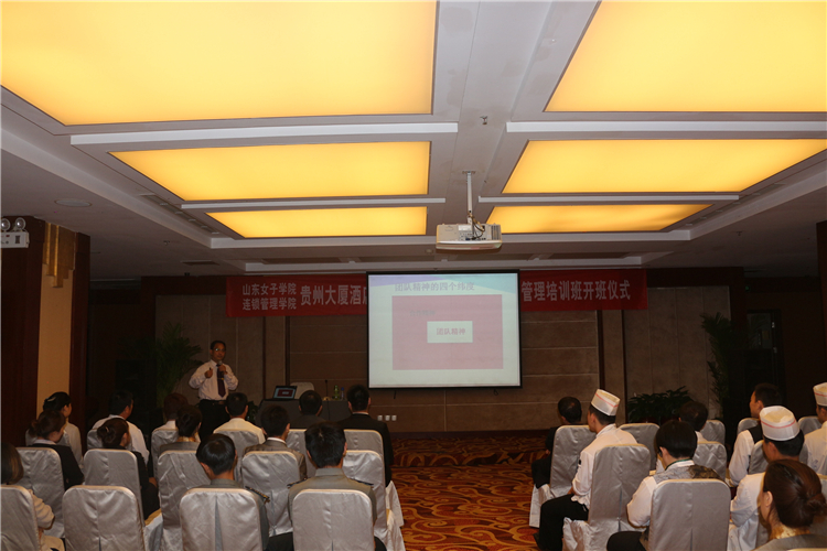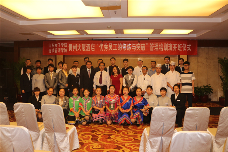 5月24—25日,山东女子学院连锁管理学院“优秀员工的修炼与突破”管理人员培训班分别在北京贵州大厦和北京红杉假日酒店举行。培训开始前,两家国际性酒店均举行了隆重而简短的开班仪式,双方相关负责人及参训人员参加了开班仪式。贵州大厦人力资源总监张震和红杉假日酒店人力资源总监关宁均向山东女子学院连锁管理学院表示了感谢,并对培训班的举办表示热烈祝贺。随后,参训人员与双方负责人合影留念。
