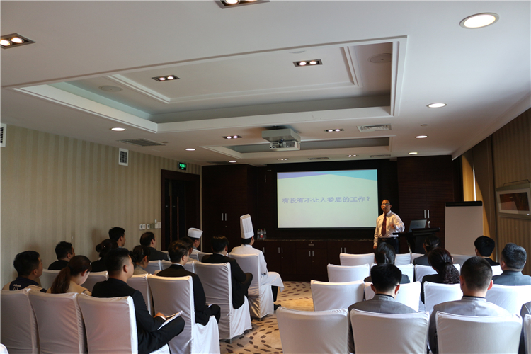 开班仪式后,山东女子学院张宝辉教授分别为贵州大厦40余名优秀员工和红杉假日酒店30余名优秀员工进行了首次授课。张宝辉教授首先通过提出两个人生问题,让参训人员进行思考,使他们对工作与生活有了更加深入地认知,增加了他们对课程的学习兴趣;再通过多个古老的寓言故事和合作精神、牺牲精神、竞争精神、创新精神四个维度对团队精神进行了详细地讲解;最后,将敬业、职业、专业三方面的相关知识以身边耳熟能详的案例声情并茂地进行了讲授。张宝辉教授的授课,得到了参训人员的一致好评,培训会在一片热烈的掌声中圆满结束。