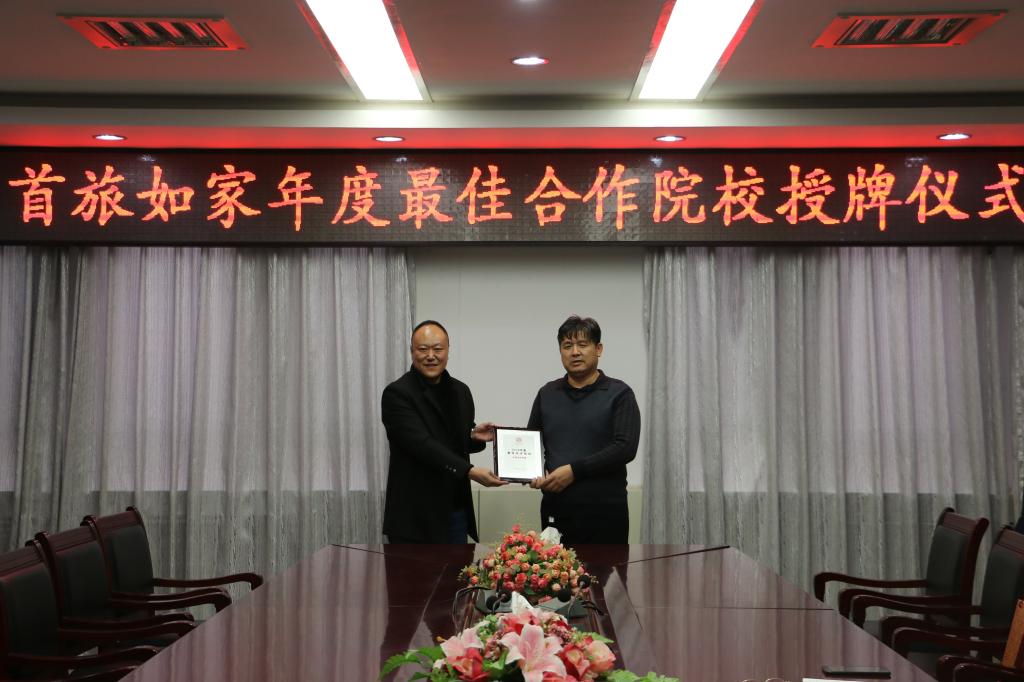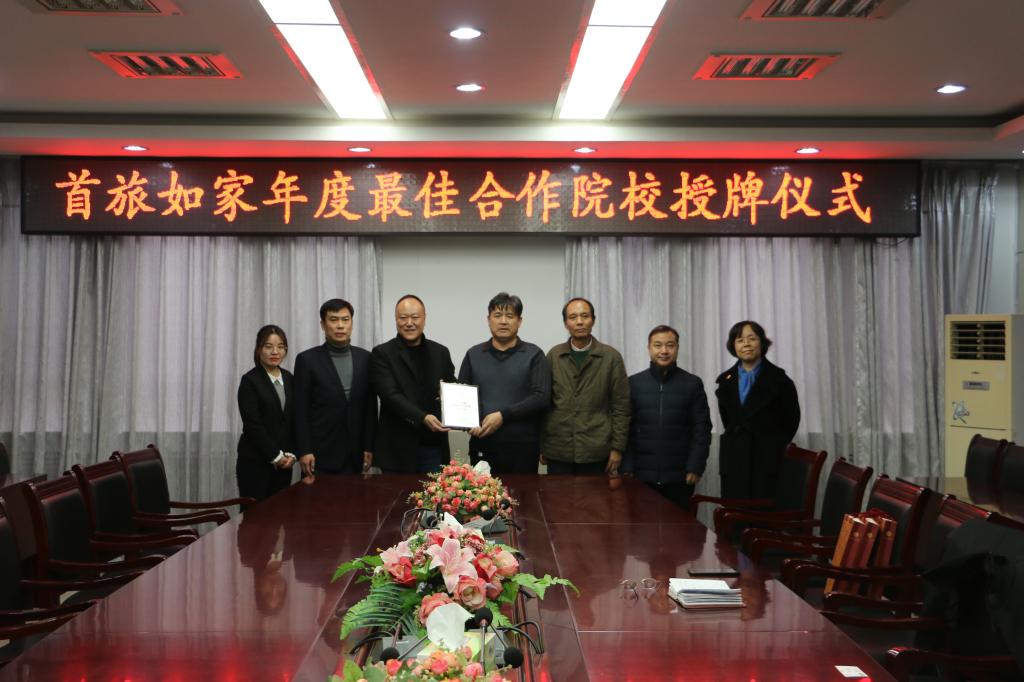 2018年12月26日下午,在学校第三会议室举行授牌仪式,山东女子学院工商管理学院获颁“首旅如家年度最佳合作院校”称号。学校刘正林副校长、教务处穆勇处长、工商管理学院张可成院长和李仕超副院长出席授牌仪式;首旅如家酒店集团北华东区域人力资源部副总监靳大为,济南城区城市总经理范俊杰,北华东区域人力资源部人事主管孟娇出席授牌仪式。