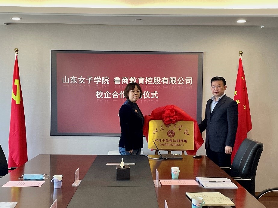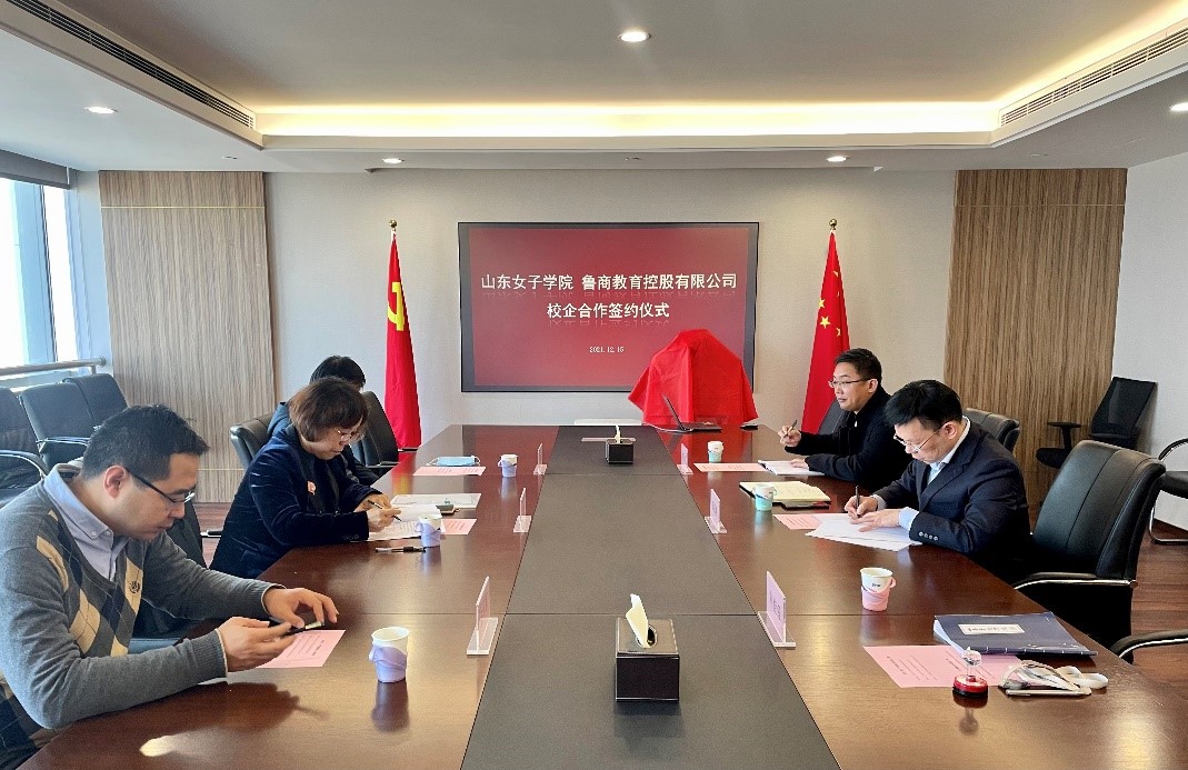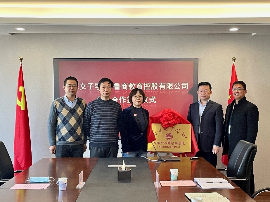 2021年12月15日,山东女子学院工商管理学院与鲁商教育控股有限公司(以下简称“鲁商教育”)在鲁商集团总部举行产教融合示范基地,和双师型教师培训基地签约暨挂牌仪式。鲁商教育副总经理郑振豹、产教融合事业部部长刘云猛、产教融合事业部主管刘佳钰,工商管理学院李仕超副院长、秦善勇副院长、物流管理系董玉幸主任出席签约挂牌仪式。